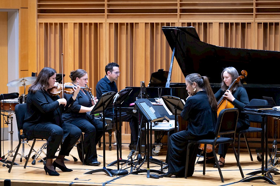 Jonathan Bailey Holland’s Between Days opens the program with an evocative piece for alto flute, clarinet, cello, and piano. This work explores the interplay of timbres and textures, creating a reflective atmosphere.